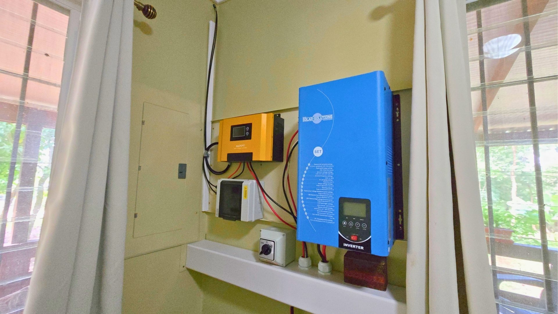 Infrastructure includes city electricity, water, high‑speed internet, a backup water tank, an automatic gate, concrete-covered parking, and a solar‑powered backup system designed for occasional outages and is expandable if needed.
