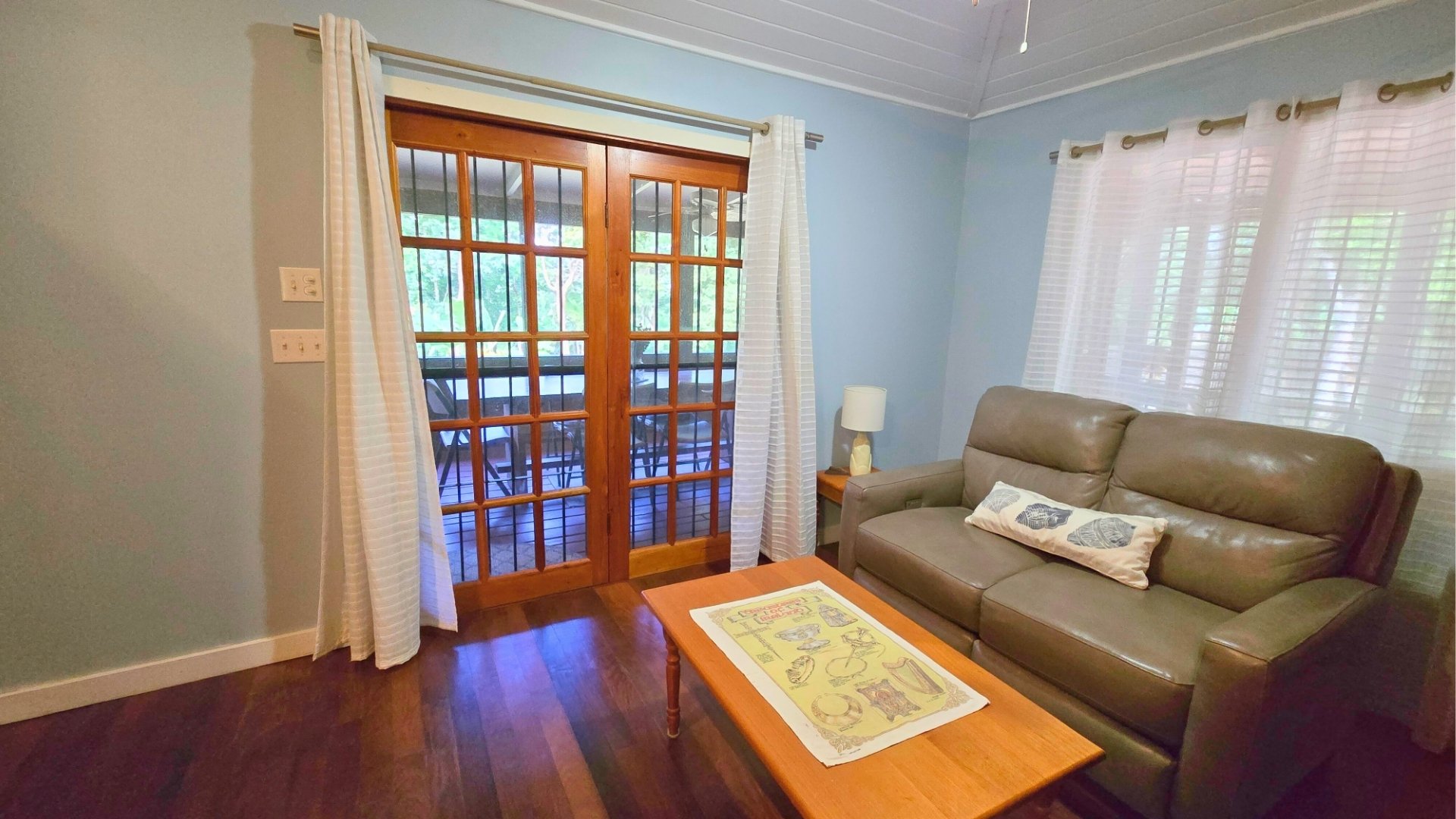 With nearly 900 sq. ft. of covered verandah wrapping around three sides, outdoor living is a highlight, from entertaining in the screened area with a custom hardwood table to enjoying sunsets and watching horse‑drawn buggies pass by.