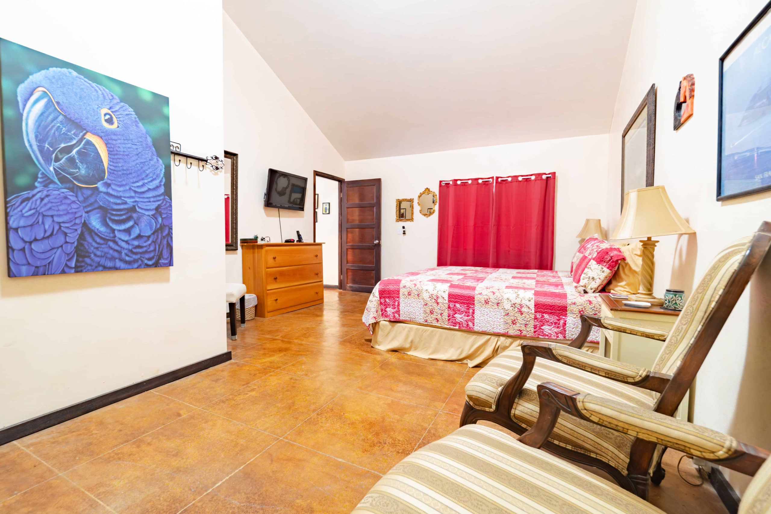 - Guest bedroom with a laundry area