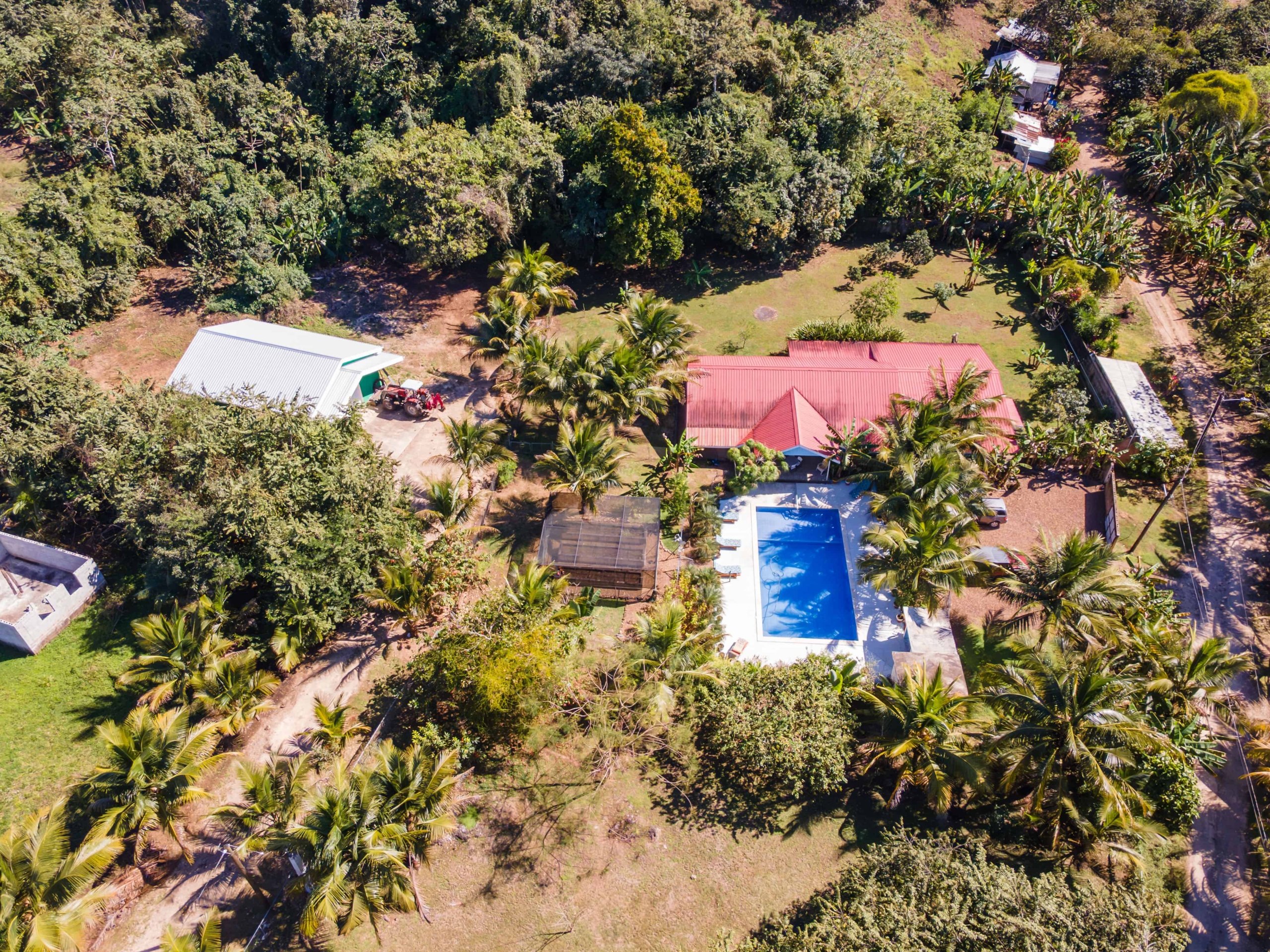 This versatile property includes a 3-bedroom main residence, a caretaker’s home, a workshop, a swimming pool, and landscaped tropical grounds, offering excellent potential for residential living, retirement, or income use.